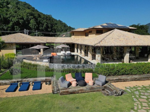 A propriedade conta com 1.500 m² de área construída e um terreno de 4.000 m², oferecendo 10 quartos — todos suítes — além de academia e área gourmet. Construída em 2017 e ampliada durante uma reforma em 2021, a casa é entregue totalmente mobiliada e equipada com ar-condicionado, garantindo o máximo conforto e comodidade mesmo nos dias mais quentes. Localizado em Portobello, um condomínio de alto padrão e referência na Costa Verde do Rio de Janeiro, o empreendimento oferece segurança 24 horas e infraestrutura completa, incluindo clube náutico privativo, campo de futebol profissional, quadras de squash e tênis, academia, sala de jogos, hotel com serviços all-inclusive, resort e safári, além de pista de pouso de 1.200 metros, heliponto, marina e uma deslumbrante praia privativa.